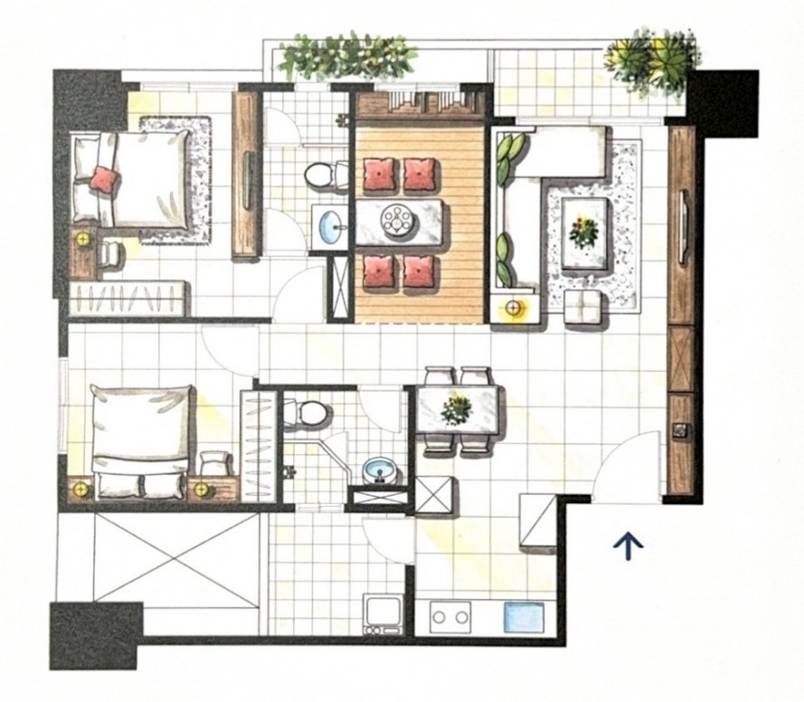 3、三房兩廳兩衛,格局方正,衛浴都有對外窗,高樓層,無敵景觀,採光通風一級棒。